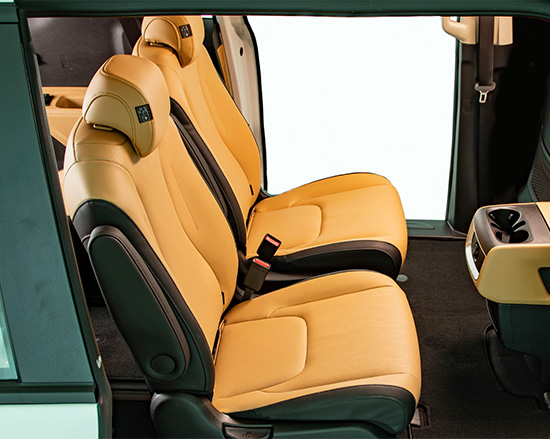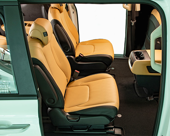 Univan RT CL has a versatile cabin because of Carnival’s Slide-Flex 2nd-Row seats. Slide-Flex 2nd-Row seats provide room for eight passengers with a center section that can be moved to provide easy access to the third-row or can be folded to provide a functional table.